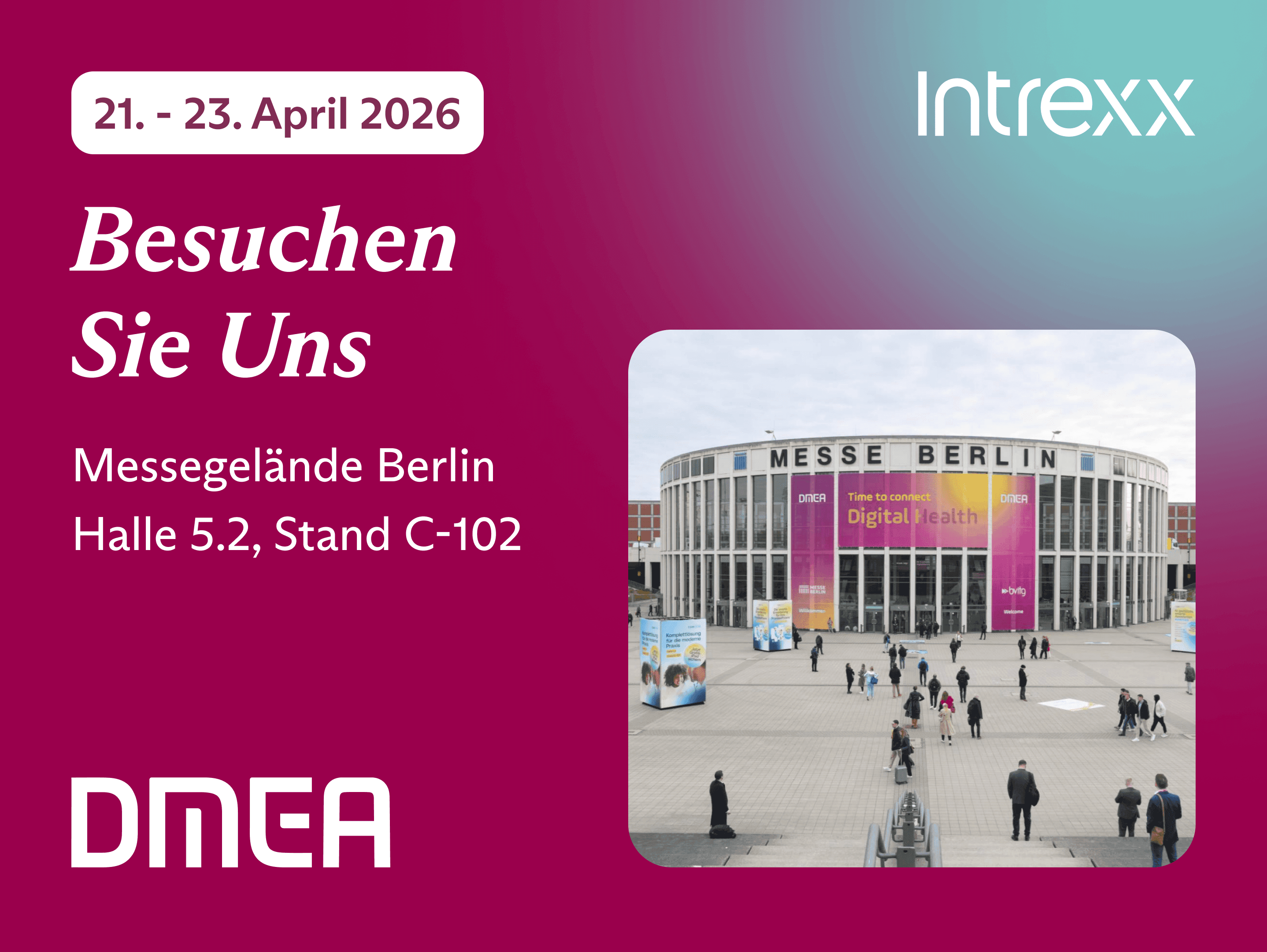Treffen Sie uns persönlich auf Europas führendem Event für Digital Health und erleben Sie digitale Plattformlösungen und zukunftsweisende Technologien von morgen.